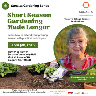 Our amazing friend Janet Melrose, Calgary's Cottage Gardener has guided us along the path of community garden and growing food in small spaces. She leads Sunaltans in multiple different gardening workshop series a year. For more information on Janet's Gardening Workshops at Sunalta, email tamara.baldwin@calgary.ca.